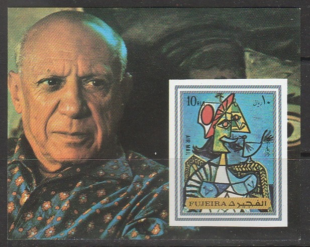 Эмират Фуджейра 1972 год. Пабло Пикассо "Женщина в сине-красной шляпе", б/зубц. блок. (8,5)