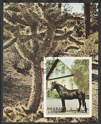 Эмират Шарджа 1972 год. Лошади, блок (гашёный)