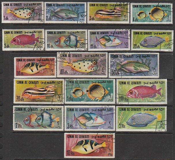 Эмират Умм-эль-Кайвайн 1967 год. Стандарт. Рыбы Персидского залива, 18 марок из серии (гашёные) (18 из 27)