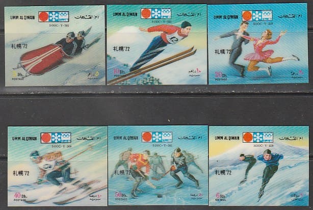 Эмират Умм-эль-Кайвайн 1972 год. Зимние Олимпийские игры в Саппоро, 6 марок с рифлёным пластиковым покрытием.