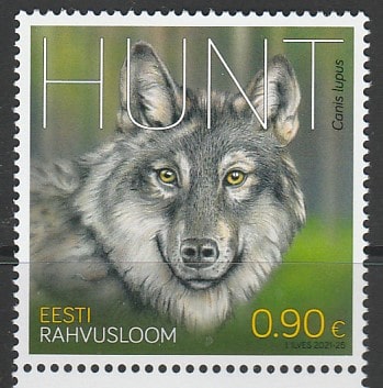 Эстония 2021 год. Фауна: волк, 1 марка (н