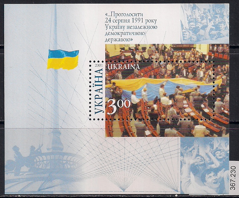 Украина 2001 год. 10-я годовщина независимости. 1 блок