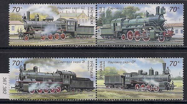 Украина 2005 год. Локомотивостроение в Украине. 4 марки. (367,382