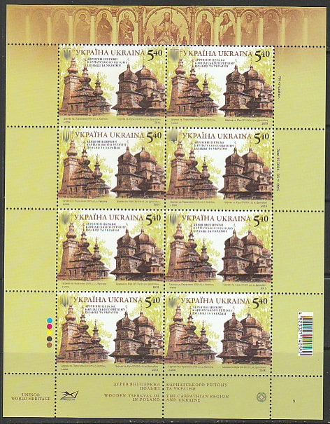 Украина 2015 год. Совместный выпуск Украины и Польши. Церкви, малый лист.