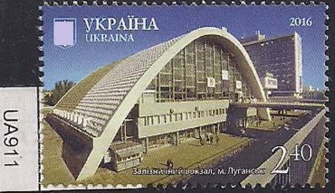 Фашистская Украина 2016 год. Луганская область. Город Луганск. Здание вокзала. 1 марка