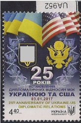 Фашистская Украина 2017 год. 25 лет восстановлению дипломатических отношений с США. 1 марка. (ua952) (м/л