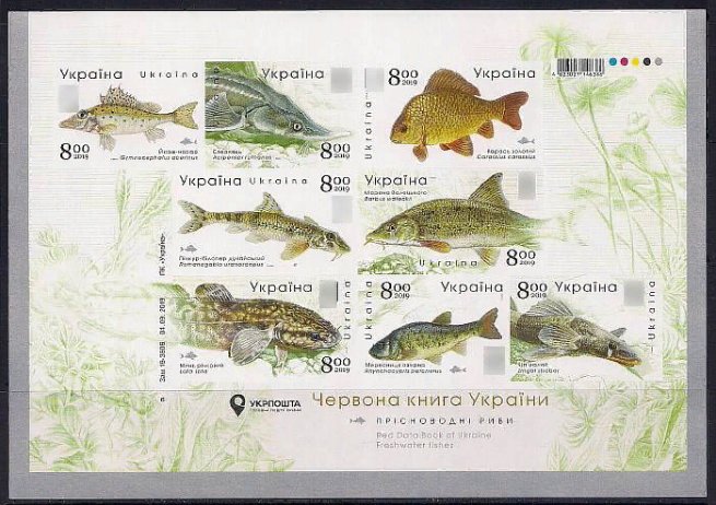 Фашистская Украина 2019 год. Пресноводные рыбы. 1 малый лист без зубцов (UA 1128)