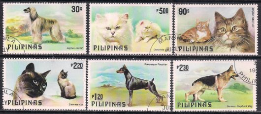 Филиппины 1979 год. Кошки и собаки. 6 марок (гашеные)