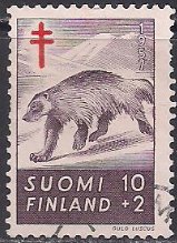 Финляндия 1957 год. Борьба с туберкулезом. Росомаха (ном. 10+2). 1 марка из серии (гашеная)
