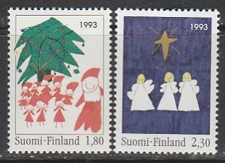 Финляндия 1993 год. Рождество. Детские рисунки, 2 марки.