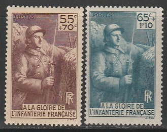 Франция 1938 год. Памятник пехотинцам, 2 марки (наклейка) (12)