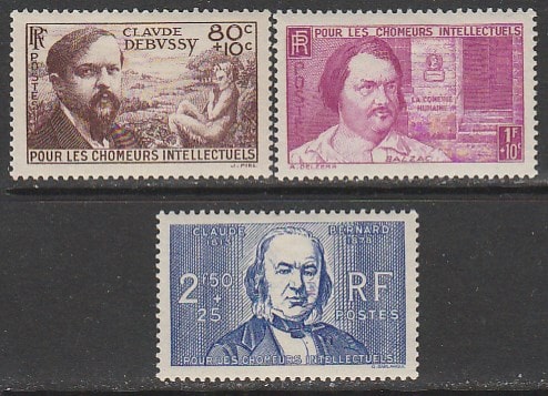 Франция 1940 год. Безработные интеллектуалы, 3 марки (наклейка) (18/13)