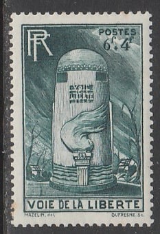 Франция 1947 год. Километровый камень на улице Свободы, 1 марка (наклейка) (1/0,7)