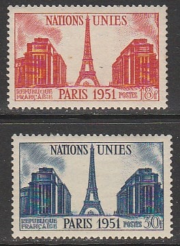 Франция 1951 год. Сессия ООН в Париже, 2 марки (наклейка) (2,5/1,7)