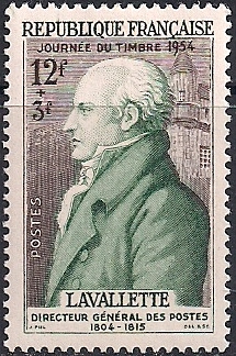 Франция 1954 год. День почтовой марки. Генеральный директор почты А.-М. Шаман, 1 марка (наклейка) (3,6/3,2)