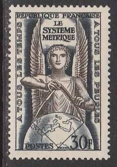 Франция 1954 год. Международный конгресс мер и весов, 1 марка (наклейка) (5,5/4,5)
