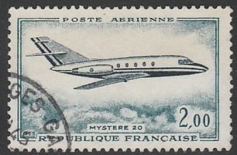 Франция 1965 год. Самолёт "Mistere 20", 1 гашёная марка