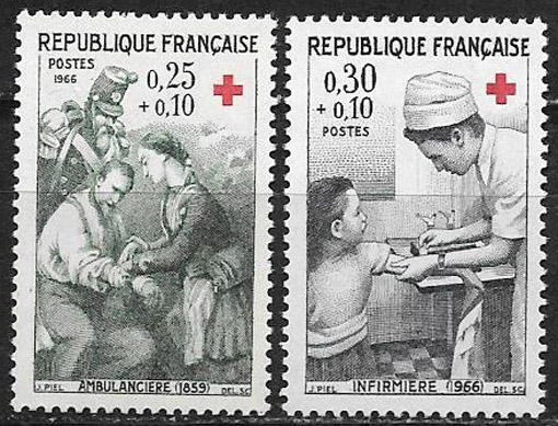 Франция 1966 г., Красный крест, Оказание помощи, 2 марки