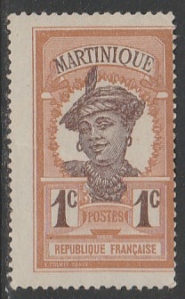 Французская Мартиника 1908 год. Местная жительница, ном. 1 С, 1 марка из серии.