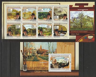 Французские Художники, К.Писсарро, Гвинея 2009, мал.лист + блок