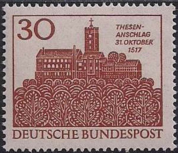 ФРГ 1967 год. 450 лет провозглашению тезисов М. Лютера в Дворцовой церкви Виттенберга. 1 марка