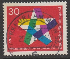 ФРГ 1969 год. 50 лет Международной Рабочей Организации "IOA". Эмблема в форме звезды, 1 марка (гашёная)
