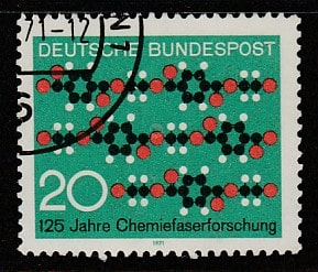 ФРГ 1971 год. 125 лет исследованию химического волокна, 1 марка (гашёная)