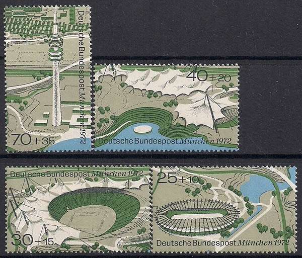 ФРГ 1972 год. Виды Олимпийского Мюнхена. 4 марки