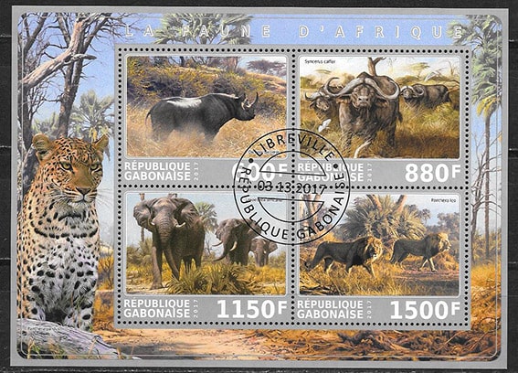 Габон 2017 год. Дикие животные Африки, 1 гашеный блок