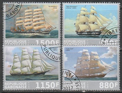 Габон 2017 год. Парусные корабли, 4 марки (гашёные) (IV) Л Сувенирный выпуск.