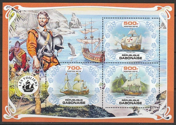 Габон 2019 год. Исторические корабли, малый лист. Сувенирный выпуск.