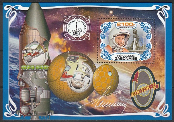 Габон 2019 год. Космический корабль "Восток-2". Космонавт Герман Титов, блок. Сувенирный выпуск.