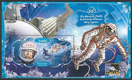 Габон 2020 год. 55 лет первому выходу человека в открытый космос. А.А. Леонов, блок (гашёный)
