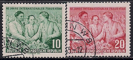 ГДР 1955 год. 45 лет Международному женскому дню. 2 гашёные марки