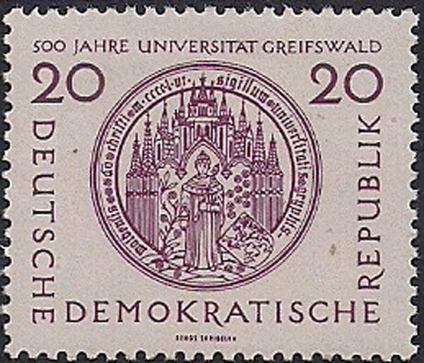ГДР 1956 год. 500 лет университету Грейфсвальда.1 марка