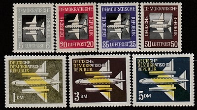 ГДР 1957 год. Авиапочта, 7 марок (наклейка)