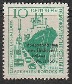 ГДР 1960 год. Ввод в эксплуатацию грузового порта Росток, 1 марка с надпечаткой