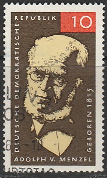 ГДР 1965 год. Адольф фон Менцель, немецкий художник, 1 гашёная марка