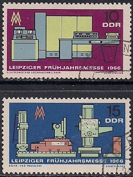 ГДР 1966 год. Лейпцигская весенняя ярмарка. Станки. 2 гашёные марки
