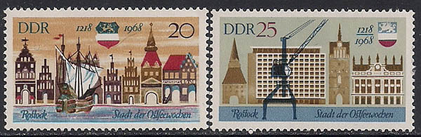 ГДР 1968 год. 750 лет порту в Ростаке. 2 марки