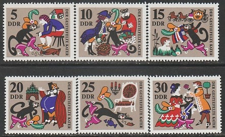 ГДР 1968 год. Сказка "Кот в сапогах", 6 марок.