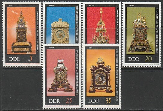 ГДР 1975 год. Старинные часы, 6 марок (наклейка)