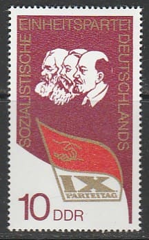 ГДР 1976 год. IX съезд СДПГ. Ленин, Маркс и Энгельс, 1 марка из двух.