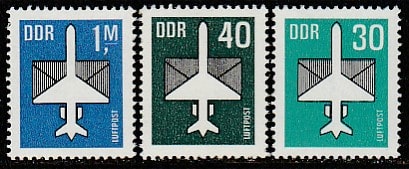 ГДР 1982 год. Авиапочта. Самолёт и конверт, 3 марки