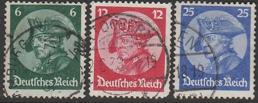 Германия. Рейх 1933 год. Фридрих Гробе, король Пруссии; 3 гашёных марки