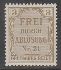 Германия (II Рейх) 1903 год. Служебные марки для Пруссии, 3 Pf., 1 марка из серии (наклейка)