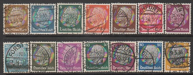 Германия (III Рейх) 1933 год. Стандарт. Рейхспрезидент Пауль фон Гинденбург, 14 марок (гашёные) (1100/200/70)
