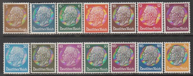 Германия (III Рейх) 1933 год. Стандарт. Рейхспрезидент Пауль фон Гинденбург, 14 марок (наклейка)