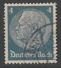 Германия (III Рейх) 1933/1936 год. Стандарт. Рейхспрезидент Пауль фон Гинденбург, 4 Pf., 1 марка из серии (гашёная)