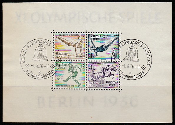 Германия (III Рейх) 1936 год. Летние Олимпийские игры в Берлине, блок (I) (гашёный)